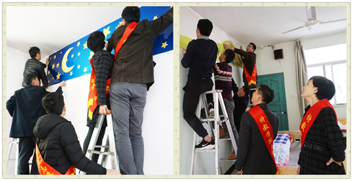 繼1月5日三系黨組織與善恩園結(jié)對(duì)子開展關(guān)愛特殊群體黨員志愿活動(dòng)以來,根據(jù)善恩園提出的“文化氛圍”幫扶要求,文化創(chuàng)意系、特殊教育系迅速召集人員,發(fā)揮兩黨員專業(yè)特長對(duì)善恩園的3個(gè)宿舍和食堂進(jìn)行氛圍設(shè)計(jì),并于1月19日召開善恩園文化氛圍設(shè)計(jì)研討會(huì),從9幅設(shè)計(jì)稿中挑選出5幅作品進(jìn)行噴繪。1月22日,兩系黨員帶著宣傳畫前往閩侯縣善恩園進(jìn)行第一次的文化氛圍布置。