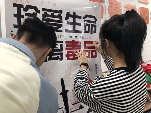 活動現(xiàn)場,學(xué)生們通過觀看禁毒海報展,更加深刻地了解毒品的危害及預(yù)防毒品的方法,并在寫著“珍愛生命、拒絕毒品”禁毒海報上簽名,表示將堅決抵制毒品,潔身自愛、絕不沾毒,爭當(dāng)禁毒小衛(wèi)士。
