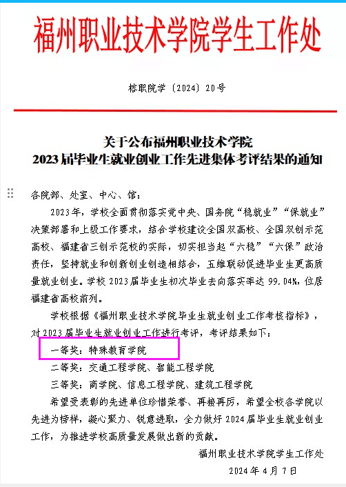近日,我校發(fā)文通報(bào)表揚(yáng)2023屆畢業(yè)生就業(yè)創(chuàng)業(yè)工作先進(jìn)集體,我院榮獲2023屆畢業(yè)生就業(yè)創(chuàng)業(yè)工作考核一等獎(jiǎng)。