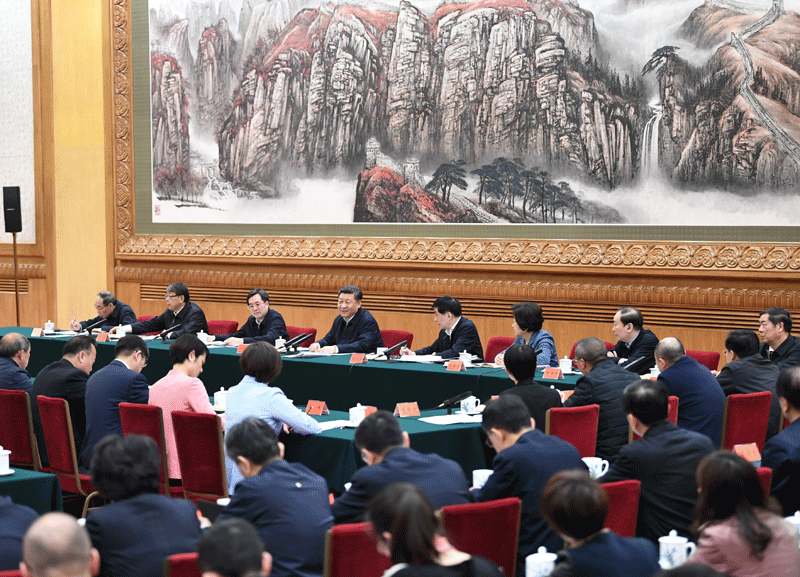 3月18日,中共中央總書記、國家主席、中央軍委主席習(xí)近平在北京主持召開學(xué)校思想政治理論課教師座談會(huì)并發(fā)表重要講話。新華社發(fā)(盛佳鵬 攝)