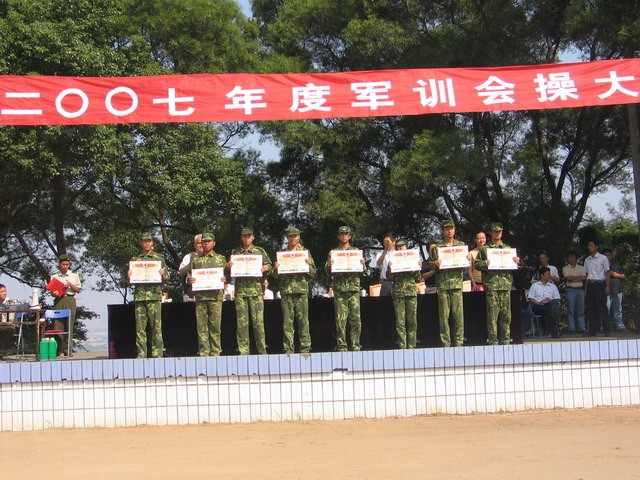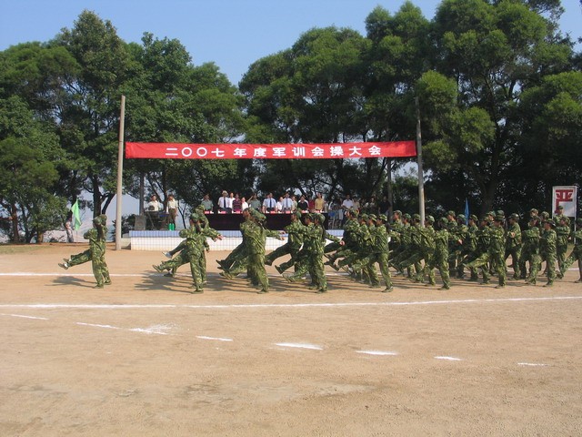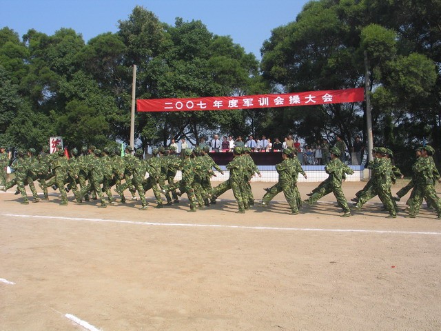 秋高氣爽的九月,經(jīng)過兩周艱苦的軍事訓練,2007級新生以良好的精神面貌迎接院領(lǐng)導的檢閱。軍訓中,2007級新生繼承和發(fā)揚人民軍隊的好傳統(tǒng)、好作風和不怕艱難困苦的精神,積極主動地向教官們學習,服從命令,聽從指揮,自覺遵守軍訓紀律,嚴格執(zhí)行條例規(guī)定,認真地完成每一個訓練科目,表現(xiàn)出了良好的紀律和作風,展示了新世紀大學生的嶄新風采。