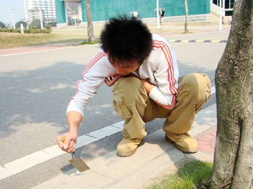 人文系學(xué)生在鏟除路邊口香糖跡