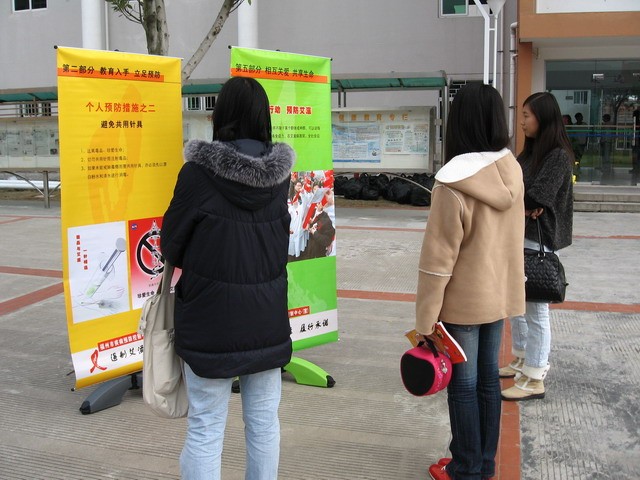 艾滋病預防教育活動一直以來都是我院健康教育工作的重要組成部分。為了進一步引導廣大學生以積極科學的態(tài)度對待艾滋病,維護自身健康和安全,提高疾病預防意識和健康生活技能,院學生處、團委聯(lián)合醫(yī)務室于12月中旬在全院學生中開展“紅絲帶”健康宣傳教育系列活動。活動包括500多名學生的在線調(diào)查、“遏制艾滋,履行承諾”宣傳圖片展、“艾滋離我們有多遠”健康教育講座、“艾滋知多少”問卷調(diào)查活動和“飄飛的紅絲帶”艾滋病健康宣傳演講賽等,內(nèi)容豐富,形式多樣,深受廣大學生的歡迎和好評。在圖片展現(xiàn)場,許多學生面對圖片資料感慨萬分;在教育講座現(xiàn)場,學生們踴躍發(fā)言,紛紛就如何增強健康生活技能提出種種疑惑;在演講比賽現(xiàn)場,14位選手精彩的演講,贏得了現(xiàn)場陣陣掌聲,最后由人文社科系05文秘班陳夏洋同學摘得桂冠。福州市疾病控制中心林華主任對我院學生關注艾滋疾病、理解艾滋病人的科學觀念給予充分肯定。