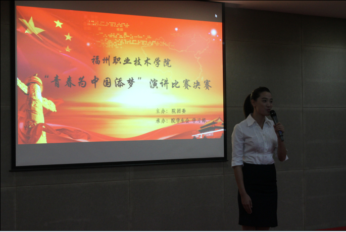 2013年12月9日晚18時30分,由院團委主辦,院學習部承辦的“青春為夢想添夢”主題演講比賽在綜合樓學術(shù)報告廳拉開帷幕。共有10名同學通過前期激烈的角逐,最終脫穎而出進入此次決賽。