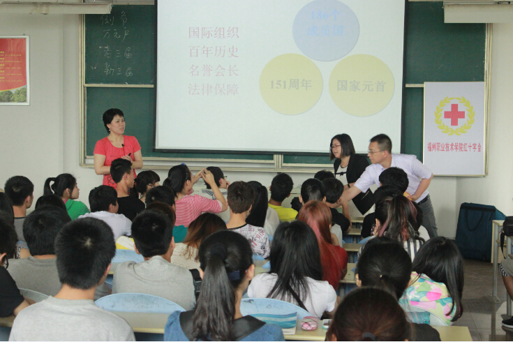 2014年5月21日下午,由院團委主辦的“紅十字急救知識講座”在1號教學樓401舉行,福州市紅十字會救護培訓師魯江萍主任應邀來我院做專題講座,參加本次講座的有特教生、10個系(院)紅十字會會員、院學生干部等100余人。