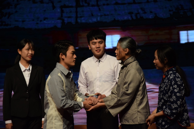 文藝匯演在校廣播站的詩(shī)朗誦《新時(shí)代 新夢(mèng)想 新征程》中拉開(kāi)序幕,校廣播站的同學(xué)們用青年之聲頌愛(ài)校之情。緊接著便是由舞蹈《古厝》帶領(lǐng)大家進(jìn)入“歌唱祖國(guó) 新時(shí)代”篇章;由校學(xué)生藝術(shù)團(tuán)話(huà)劇隊(duì)演繹的話(huà)劇《縣委書(shū)記廖俊波》寫(xiě)實(shí)展現(xiàn)了廖俊波同志的“樵夫”精神;由參訓(xùn)部隊(duì)教官們帶來(lái)的《擒拿術(shù)展示》將匯演推向了匯演的高潮;由校爾雅國(guó)學(xué)社、香蘭書(shū)社和校藝術(shù)團(tuán)民樂(lè)隊(duì)攜手獻(xiàn)上《校園音詩(shī)畫(huà)》為大家?guī)?lái)了一場(chǎng)全新的視聽(tīng)盛宴;最后匯演在校歌《夢(mèng)起勵(lì)園》中完美落幕。