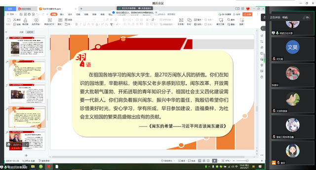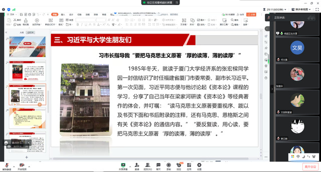為深入學(xué)習(xí)貫徹黨的二十大精神,引領(lǐng)新時(shí)代青年思想,激發(fā)前進(jìn)動(dòng)力,6月7日晚在騰訊會(huì)議開展“習(xí)近平與青年書”線上專題講座,225名青年馬克思主義者培養(yǎng)工程學(xué)員參加學(xué)習(xí)。
