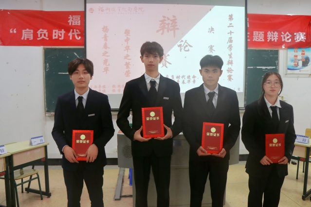 為培養(yǎng)同學們的辯論思維,提高同學們的邏輯思考能力與語言表達能力,5月8日,福州職業(yè)技術(shù)學院“肩負時代使命,思辯青春華章”第二十屆學生辯論賽決賽在篤行樓211教室舉行。