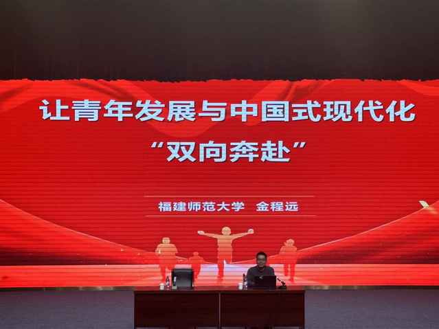 為深入學習貫徹黨的二十大、二十屆三中全會精神和全國兩會精神,激勵我校青馬學子立志做有理想、敢擔當、能吃苦、肯奮斗的新時代好青年,3月26日下午,校團委組織開展以“讓青年發(fā)展與中國式現(xiàn)代化‘雙向奔赴’”為題的專題講座,福建師范大學團委、福建省青年講師團金程遠老師做客本次講座。