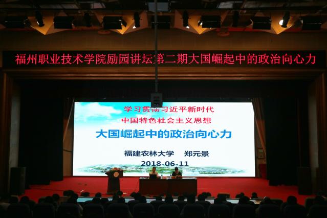 根據(jù)省委教育工委關(guān)于組織開展高校學(xué)習(xí)貫徹習(xí)近平新時(shí)代中國(guó)特色社會(huì)主義思想專題報(bào)告巡回宣講等有關(guān)安排,我校運(yùn)用“勵(lì)園講壇”平臺(tái),于2018年6月11日在大禮堂舉行“學(xué)習(xí)新思想學(xué)習(xí)新思想福建高校百萬(wàn)師生同上一堂課活動(dòng)”,福建農(nóng)林大學(xué)鄭元景教授到校為各學(xué)院500名學(xué)生代表作“大國(guó)崛起中的政治向心力”主題報(bào)告。