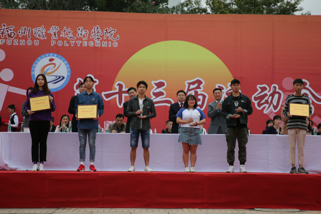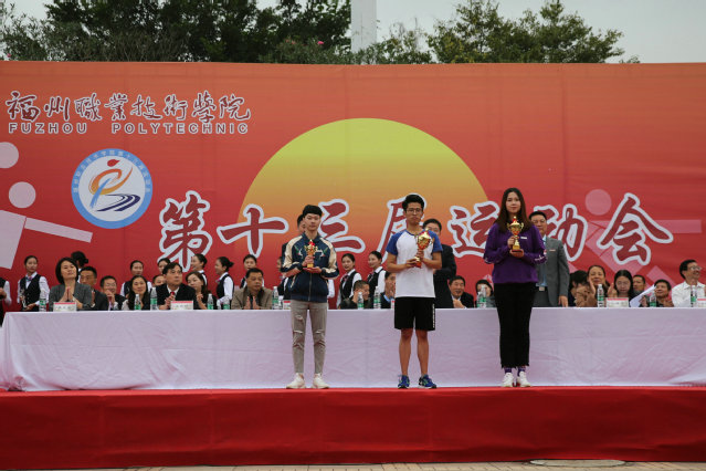 閉幕式宣布了比賽成績。特殊教育學(xué)院獲得入場式特色表演獎;商學(xué)院勇奪團體總分第一名、廣播操比賽第一名、排球聯(lián)賽第一名、“體育道德風(fēng)尚獎”第一名、“入場式評比獎”第一名;建筑工程學(xué)院獲籃球聯(lián)賽第一名;文化創(chuàng)意學(xué)院獲足球聯(lián)賽第一名。