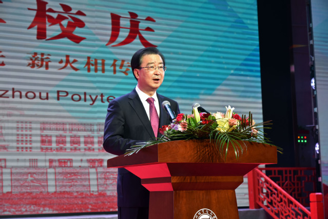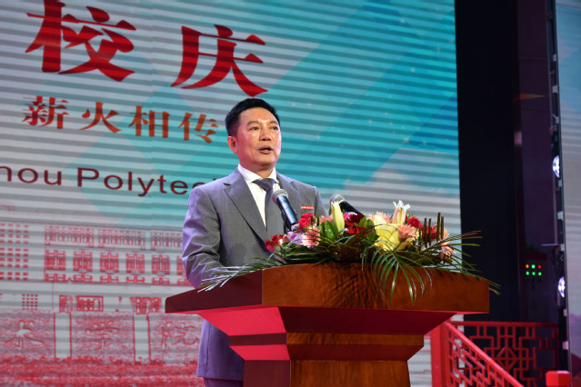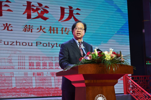 兄弟院校閩江學(xué)院校長王宗華致辭,為福州職業(yè)技術(shù)學(xué)院60周年華誕送上美好祝福。