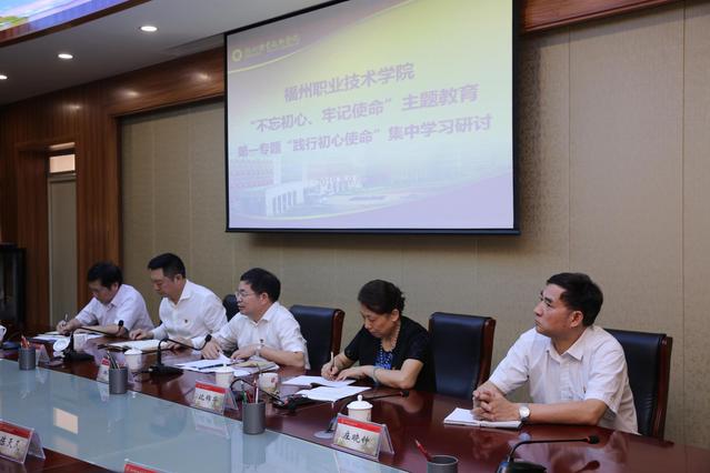 9月25日,福州職業(yè)技術(shù)學(xué)院開(kāi)展“不忘初心、牢記使命”主題教育第一專題“踐行初心使命”研討。校黨委書記林子波主持研討會(huì)并講話。校領(lǐng)導(dǎo),各處室負(fù)責(zé)人、各院系黨政負(fù)責(zé)人參加研討。