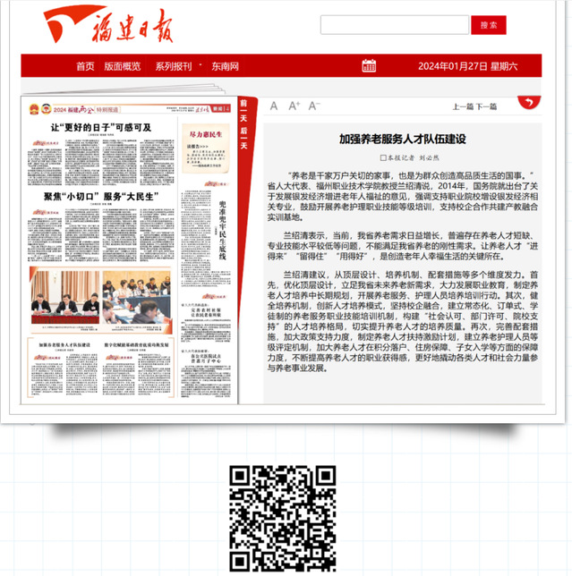 近日,福建省人民政府網(wǎng)站、《福建日報》、學(xué)習(xí)強國福建平臺、新華網(wǎng)福建頻道、《福州日報》、福州新聞網(wǎng)、東南網(wǎng)、廈門網(wǎng)等多家主流媒體對我校省人大代表、商學(xué)院教授蘭紹清在2024年福建省兩會的建言獻策進行專題報道。