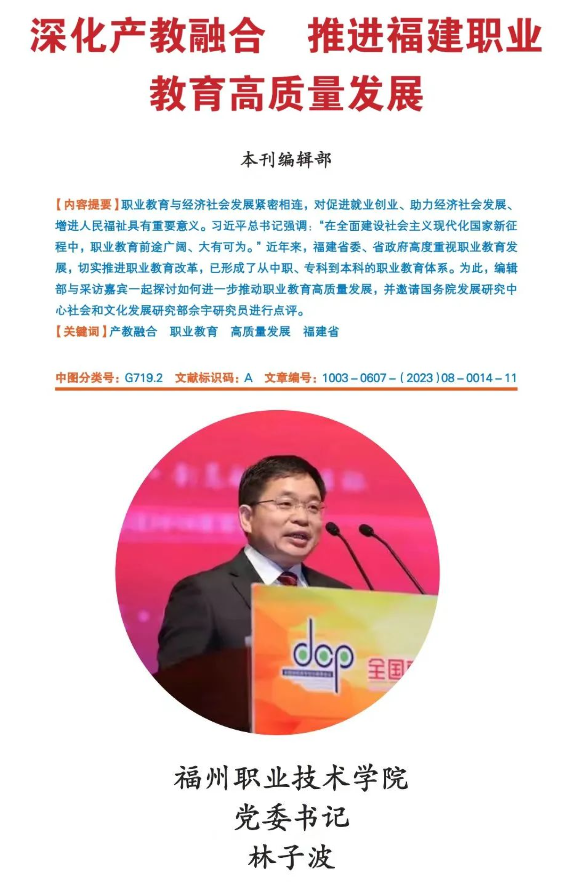 福建省人民政府發(fā)展研究中心主辦的《發(fā)展研究》2023年第8期“深學爭優(yōu)、敢為爭先、實干爭效”專欄,刊發(fā)了對學校黨委書記林子波的采訪,內容如下: