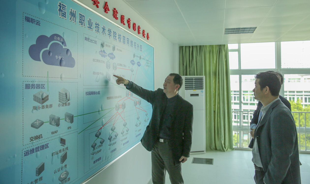 2019年3月27日,江蘇省楊州技師學(xué)院領(lǐng)導(dǎo)一行到我校對口交流。交流期間,楊州技師學(xué)院黨委書記徐祥華帶隊(duì)到現(xiàn)代教育技術(shù)中心參觀學(xué)校信息化建設(shè),重點(diǎn)參觀了學(xué)校網(wǎng)絡(luò)(IDC)機(jī)房。林捷主任重點(diǎn)介紹了機(jī)房建設(shè)過程和我校網(wǎng)絡(luò)拓?fù)?;在現(xiàn)教中心會議室,主要介紹了我校目前信息化建設(shè)情況和管理模式、軟件管理手段。雙方深入交流機(jī)房建設(shè)經(jīng)驗(yàn)、建設(shè)過程需要注意的事項(xiàng)以及機(jī)房建設(shè)的關(guān)鍵點(diǎn)和安全因素。通過交流,雙方在校園信息化建設(shè)方面相互啟發(fā),都表示收獲很大。