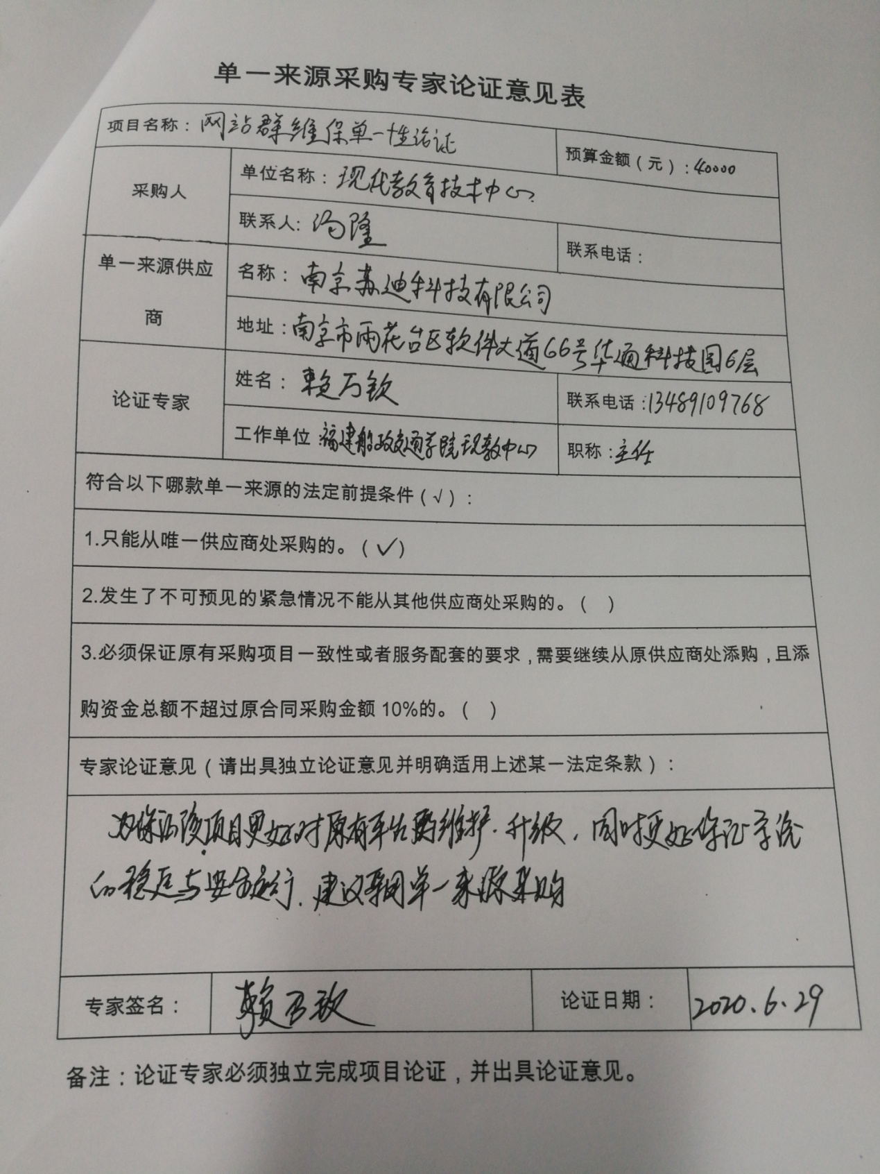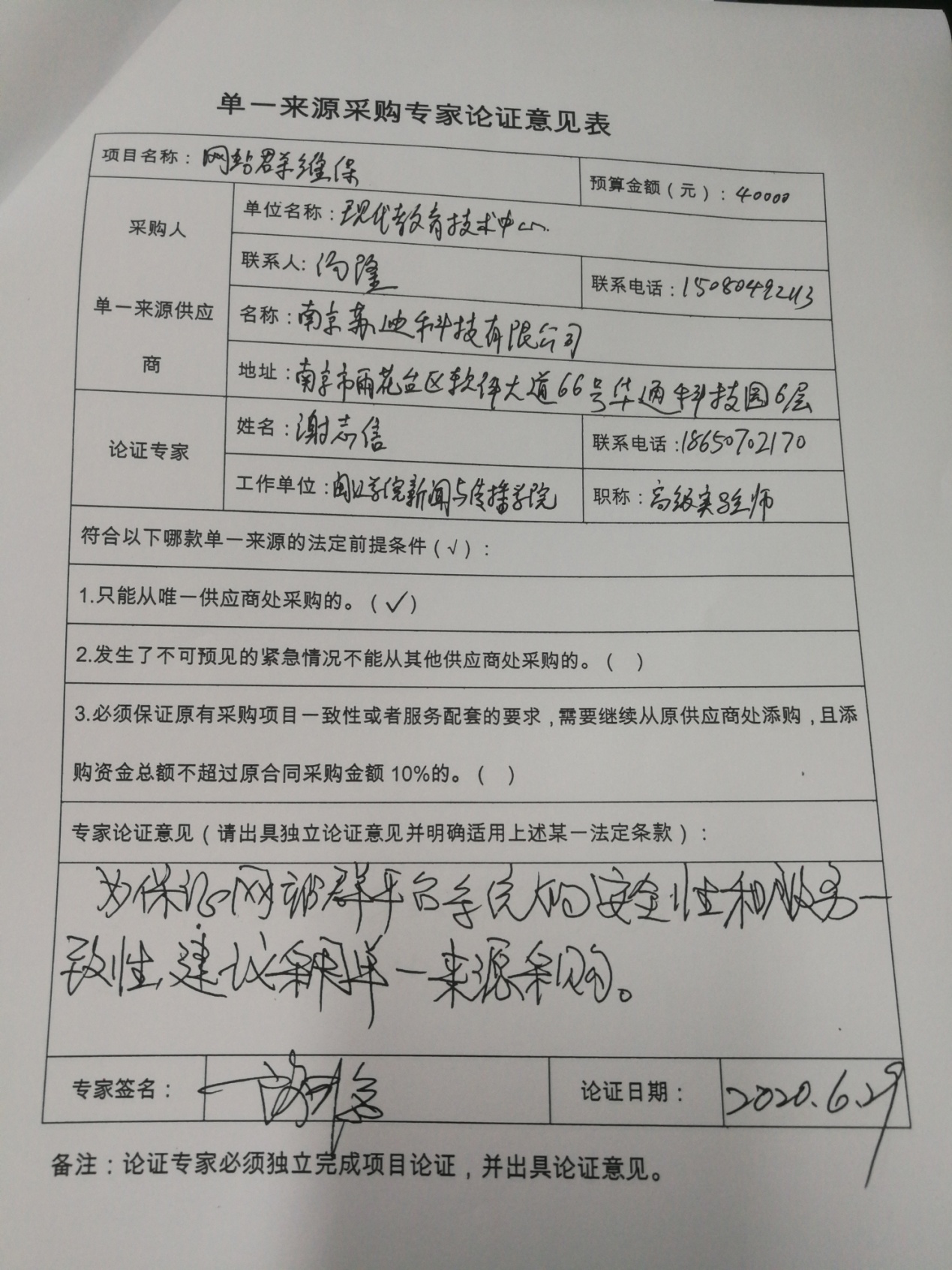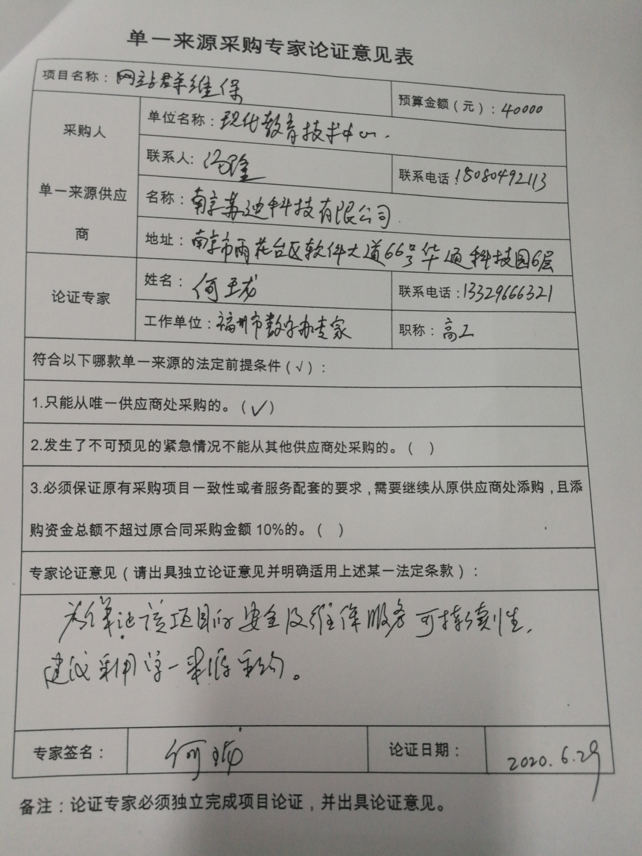 我院該項(xiàng)目于2018年7月簽約,采購產(chǎn)品為網(wǎng)站群維保、網(wǎng)頁改版建站服務(wù)。為了更好地對原有平臺的維護(hù)、升級,保證系統(tǒng)的穩(wěn)定與安全運(yùn)行,依據(jù)《中華人民共和國政府采購法》第三十一條“符合下列情形之一的貨物或者服務(wù),可以依照本法采用單一來源方式采購:(一)只能從唯一供應(yīng)商處采購的”的規(guī)定,故采用單一來源采購方式。