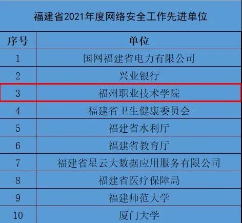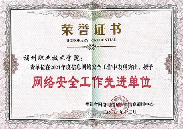 12月15日,在福建省2021年網(wǎng)絡(luò)與信息安全通報總結(jié)暨網(wǎng)絡(luò)安全宣貫會中,我校為全省唯一的高職院校榮獲福建省2021年度網(wǎng)絡(luò)安全工作先進(jìn)單位,充分展現(xiàn)了我校作為全國“雙高?!痹趶娀W(wǎng)絡(luò)與信息安全工作方面取得的良好成效。