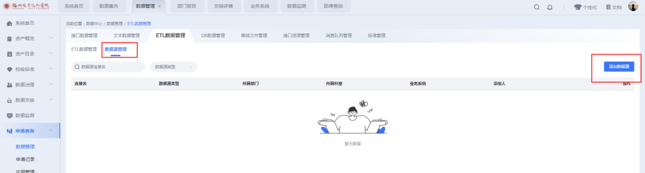 申請查詢→數(shù)據(jù)管理→ETL數(shù)據(jù)管理→數(shù)據(jù)源管理→添加數(shù)據(jù)源