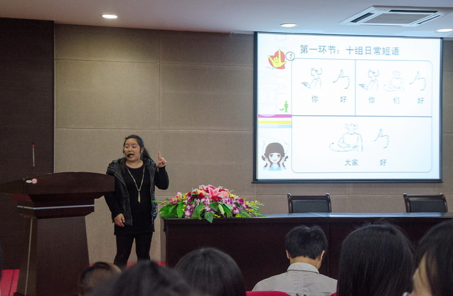 本次培訓(xùn)班由學(xué)院特教輔導(dǎo)員杜靜和肖水清老師主講,她們用生動通俗的形式,通過ppt展示、現(xiàn)場模擬校園學(xué)習(xí)生活場景、游戲等方式為學(xué)生助殘志愿者進行培訓(xùn),助殘志愿者們學(xué)習(xí)熱情高漲,學(xué)院掀起學(xué)習(xí)手語的熱潮。