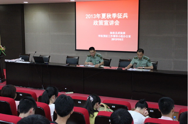 參軍報(bào)國既是磨礪人生、實(shí)現(xiàn)理想抱負(fù)的重要途徑,更是熱愛祖國的高尚行為。征招具有較高文化層次的大學(xué)生入伍是軍隊(duì)現(xiàn)代化建設(shè)對(duì)知識(shí)、人才的渴望,是高校服務(wù)軍隊(duì)建設(shè)、大學(xué)生攜筆從戎、建功軍營(yíng)、實(shí)現(xiàn)強(qiáng)國夢(mèng)的呼喚。征兵宣傳進(jìn)校園,直接和大學(xué)生“對(duì)話”,是我院深入貫徹《國防教育法》、《兵役法》,多年來不斷鼓勵(lì)大學(xué)生投身國防建設(shè),努力為部隊(duì)輸送優(yōu)秀人才的實(shí)際舉措。