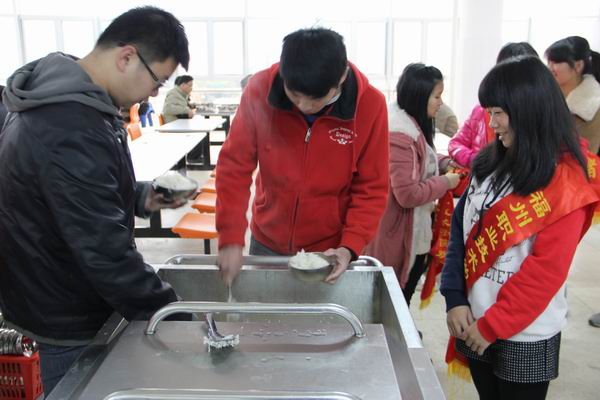 在毛澤東為雷鋒同志題詞50周年之際,為大力弘揚“奉獻、友愛、互助、進步”志愿精神和“學習雷鋒、奉獻他人、提升自己”志愿服務理念,院學生處開展了文明餐桌”創(chuàng)建活動,黨群處、工會、團委、學生會聯合倡議同學文明從衣食住行起步,幸福從身邊小事做起。為貫徹落實科學發(fā)展觀,倡導科學文明飲食文化,樹立“儉以養(yǎng)德、儉以養(yǎng)性、儉以養(yǎng)身”的生活理念,共同創(chuàng)建全國文明城市和省級文明學校。