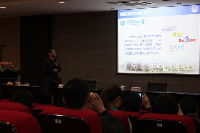 陳志勇 博士作為教育部高校輔導(dǎo)員培研基地(福建師范大學(xué))主講人,曾榮獲新浪2013年中國(guó)教育盛典“致敬導(dǎo)師獎(jiǎng)”,出版的相關(guān)著作被團(tuán)中央推薦為全團(tuán)培訓(xùn)教材,具有相當(dāng)豐富的思政工作的經(jīng)驗(yàn)。他以良好的理論素養(yǎng)和過(guò)硬實(shí)踐經(jīng)驗(yàn)從“新媒體代際怎樣遞變”、“新媒體規(guī)律如何把握”和“新媒體策略怎么運(yùn)用”三個(gè)方面,用生動(dòng)通俗的語(yǔ)言、豐富真實(shí)的案例、真實(shí)感人的視頻,為大家進(jìn)行了精彩的充滿正能量的講演。特別是在實(shí)際工作中處理新媒體危機(jī)公關(guān)流程、寫好博文技巧等問(wèn)題給與會(huì)的思政干部留下了深刻的印象。講座中間還穿插了微信互動(dòng)和微博互動(dòng),讓大家從實(shí)際的操作中體驗(yàn)新媒體技術(shù)。