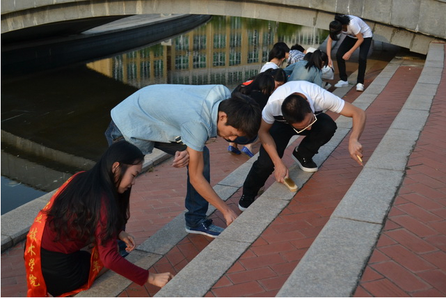此外,為更好迎接省級文明校園初評,在學生處的組織下,各系(院)學生黨員、學生干部、入黨積極分子以及志愿者紛紛開展清除校園“牛皮蘚”活動,同學們拿著勞動工具對地板上、墻壁上不文明的痕跡、口香糖印記等進行了一次大清除,此次活動充分體現(xiàn)了我院學生黨員、干部、積極分子在創(chuàng)建文明學校活動中的帶頭作用。