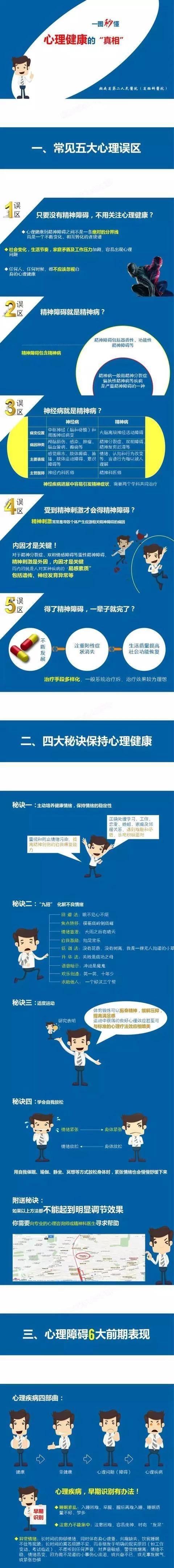 下面的圖片是由湖南某醫(yī)院制作的一圖讀懂心理健康的真相,既容易理解,又能仍大家快速GET到心理健康的知識(shí)點(diǎn),特轉(zhuǎn)載分享給大家: