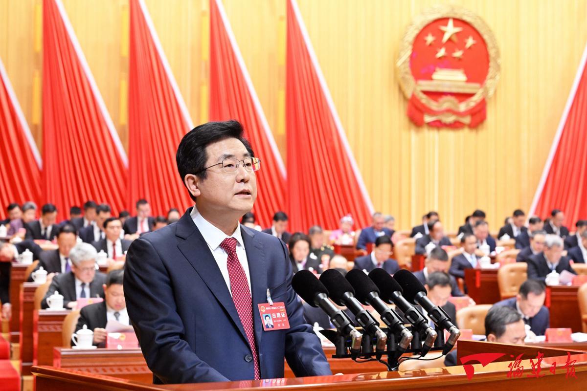 省長趙龍代表省人民政府向大會作政府工作報告。報告分為三個部分:一、堅持以習(xí)近平新時代中國特色社會主義思想為指導(dǎo),新福建建設(shè)取得新進展新成效;二、堅持以推動高質(zhì)量發(fā)展為主題,全力以赴做好2024年各項工作;三、堅持和加強黨的全面領(lǐng)導(dǎo),努力打造讓人民滿意的服務(wù)型政府。