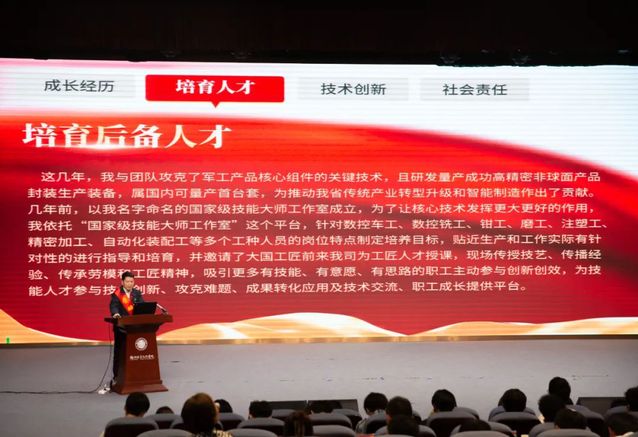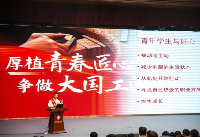 宣講會上,林楓作《厚植青春匠心,爭做大國工匠》主題宣講,寄語青年學(xué)子要不畏懼困難,不停止創(chuàng)新,為自己熱愛的事業(yè)奮斗終身,努力成長為一名高技能人才。李白蕾作《靠近光,追逐光,成為光》主題宣講,勉勵同學(xué)們與優(yōu)秀的人一起走,不斷追逐光芒,最終成為那束照亮自己和他人的光。陳海清作《赤誠詮釋初心,實(shí)干踐行使命》主題宣講,呼吁大家崇尚勞動、甘于奉獻(xiàn),在平凡的崗位上實(shí)現(xiàn)不平凡。林玉登作《揮灑青春汗水,抒寫精彩人生》主題宣講,分享了自己在精密機(jī)械設(shè)計(jì)與制造領(lǐng)域的從業(yè)經(jīng)歷,鼓勵大家立足專業(yè)、學(xué)好技能,在職業(yè)生涯中綻放光彩。