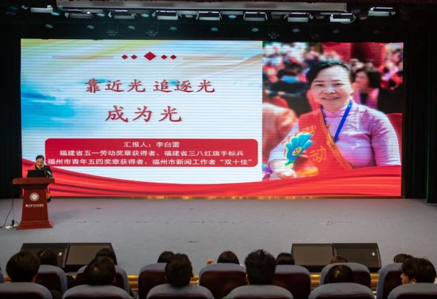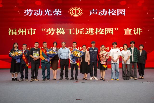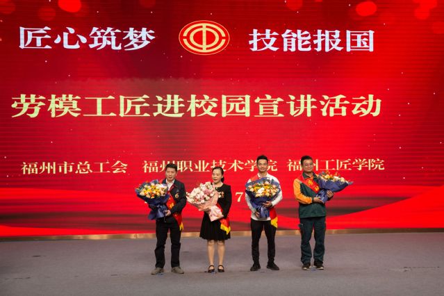 全國農(nóng)業(yè)農(nóng)村勞動模范、福建省鄉(xiāng)村振興帶頭人、福州市勞動模范、連江縣官塢海產(chǎn)開發(fā)有限公司技術(shù)總監(jiān)林楓,福建省五一勞動獎?wù)芦@得者、福建省三八紅旗手標(biāo)兵、福州日報(bào)主任記者李白蕾,福建省勞動模范、中國郵政集團(tuán)有限公司福州市城北分公司軟件園營業(yè)部經(jīng)理陳海清,全國勞動模范、全國技術(shù)能手、福建省高層次人才、福建上潤精密儀器有限公司工模中心副主任林玉登等4名勞模工匠出席活動。福州市總工會勞模辦主任余榮發(fā),福州工匠學(xué)院相關(guān)工作人員,我校黨委副書記劉春蘭和宣傳統(tǒng)戰(zhàn)部、黨政辦公室相關(guān)負(fù)責(zé)人以及師生代表參加活動。