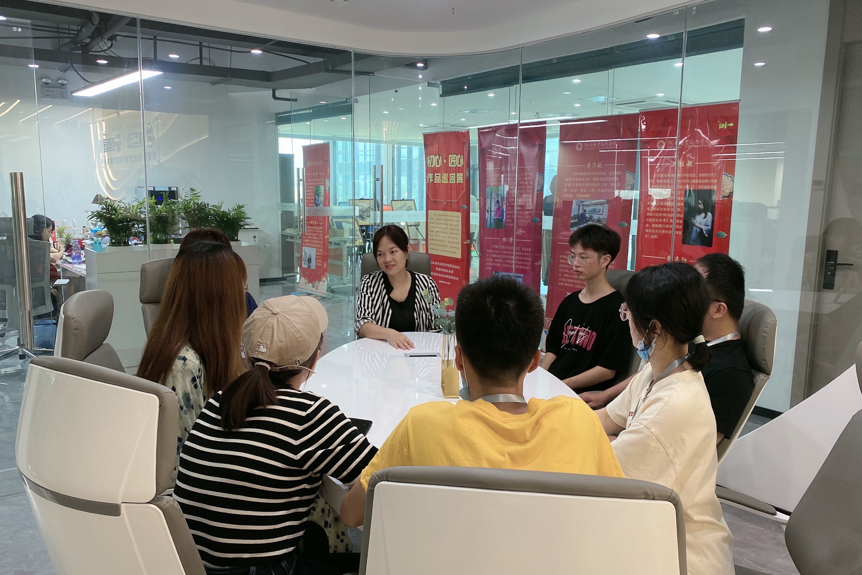 本次展覽得到鄭威校友的積極支持,鄭威校友擔(dān)任百度營(yíng)銷福建服務(wù)中心市場(chǎng)總監(jiān),主動(dòng)推薦展覽場(chǎng)地并安排人員協(xié)助布展。展出期間,他組織員工現(xiàn)場(chǎng)參觀,并召集公司現(xiàn)有福職院畢業(yè)校友職工進(jìn)行座談。校友會(huì)秘書長(zhǎng)陳曉鳳為校友們帶去了母校的問候與關(guān)懷,介紹了學(xué)校近年來的發(fā)展成果和“初心·匠心”作品巡回展活動(dòng)的開展情況。最后,她希望大家積極參與校友活動(dòng),與母校保持密切聯(lián)系,?;啬感?纯?。