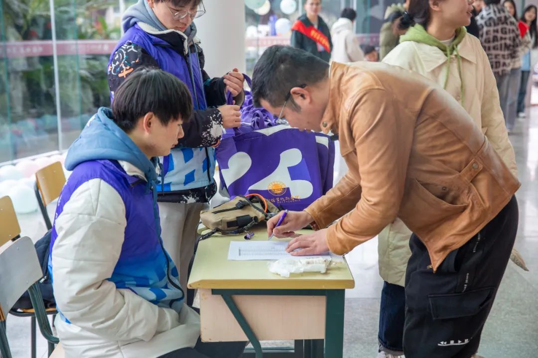 會后,志愿者帶領校友們前往設置的校園打卡點,參觀了校史館、實驗實訓室、宿舍等,為大家講解校園近年來的發(fā)展變化。接著在厚實樓玻璃大廳進行了一系列娛樂活動,重憶當年的美好時光,共敘師生情誼。