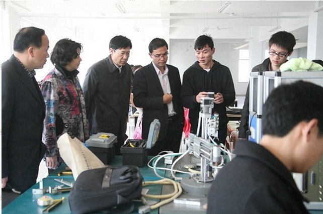 溫州職業(yè)技術(shù)學(xué)院院長(zhǎng)丁金昌在座談會(huì)上介紹了溫州職業(yè)技術(shù)學(xué)院的辦學(xué)情況和辦學(xué)特點(diǎn)。他從溫職院創(chuàng)示范階段 “以需求為導(dǎo)向”實(shí)現(xiàn)開放發(fā)展,到示范階段“以生為本”實(shí)現(xiàn)特色發(fā)展,再到后示范階段“以轉(zhuǎn)型升級(jí)”為契機(jī)實(shí)現(xiàn)創(chuàng)新發(fā)展,這三個(gè)階段的辦學(xué)歷程與辦學(xué)特點(diǎn)入手,著重介紹了該院緊緊圍繞區(qū)域經(jīng)濟(jì),就辦學(xué)定位、培養(yǎng)目標(biāo)、專業(yè)建設(shè)、師資培養(yǎng)、實(shí)驗(yàn)室建設(shè)、技術(shù)服務(wù)等方面在三階段的不同側(cè)重點(diǎn),以及相關(guān)階段所采取不同的機(jī)制政策等配套措施,促進(jìn)該院實(shí)現(xiàn)持續(xù)深入而快速的發(fā)展,成為全國(guó)高職院校排頭兵的成功經(jīng)驗(yàn)。隨后在丁院長(zhǎng)的陪同下我院考察團(tuán)參觀了溫職院以基地建設(shè)為主的產(chǎn)學(xué)研一體的新型的高職校園形態(tài)。