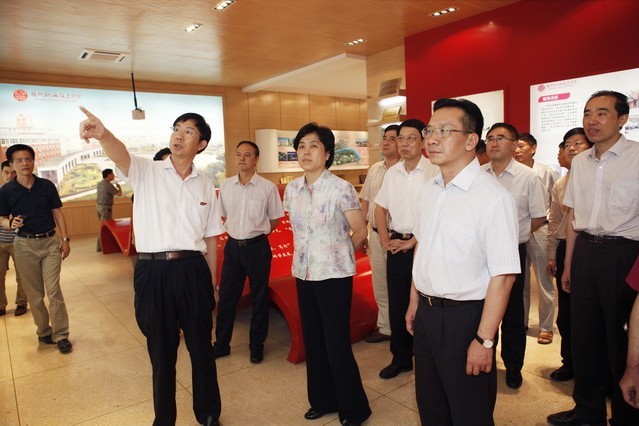 2013年7月8日下午,云南省副省長(zhǎng)高峰一行12人在福建省李紅副省長(zhǎng)、李強(qiáng)副秘書長(zhǎng)、教育廳鞠維強(qiáng)廳長(zhǎng)等領(lǐng)導(dǎo)的陪同下蒞臨我院考察指導(dǎo)工作。 院黨委陳承茂書記、林承超院長(zhǎng)等學(xué)院領(lǐng)導(dǎo)陪同上級(jí)領(lǐng)導(dǎo)及來賓參觀了學(xué)院展覽館,觀看了學(xué)院宣傳片,參觀了人文系文化創(chuàng)意實(shí)訓(xùn)中心和計(jì)算機(jī)系金科網(wǎng)絡(luò)實(shí)訓(xùn)基地。在參觀過程中,林承超院長(zhǎng)簡(jiǎn)要介紹了學(xué)院在“政校企合作,內(nèi)涵式發(fā)展”方面采取的具體措施和取得的主要成效。 上級(jí)領(lǐng)導(dǎo)及來賓對(duì)學(xué)院近幾年來跨越式發(fā)展成果給予高度評(píng)價(jià),對(duì)人文系廣告創(chuàng)意類專業(yè)項(xiàng)目實(shí)戰(zhàn)人才培養(yǎng)模式以及校企合作共建的金科網(wǎng)絡(luò)技術(shù)與管理生產(chǎn)性實(shí)訓(xùn)基地在提升人才培養(yǎng)質(zhì)量方面產(chǎn)生的積極作用表示贊賞。在文化創(chuàng)意實(shí)訓(xùn)中心,高峰副省長(zhǎng)、李紅副省長(zhǎng)與正在參加項(xiàng)目設(shè)計(jì)訓(xùn)練的特教班同學(xué)在手語(yǔ)老師的幫助下進(jìn)行交談,他們被特教班學(xué)生自強(qiáng)不息、奮發(fā)向上的精神所感動(dòng),還親切地與特教學(xué)生合影留念。 (黨政辦)