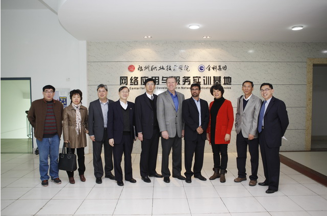 2013年12月12日上午,世界500強、網(wǎng)絡(luò)行業(yè)全球領(lǐng)軍企業(yè)思科公司公共事務(wù)部高級總監(jiān)(思科網(wǎng)院全球總負(fù)責(zé)人)Michael Yutrzenka、公共事務(wù)部高級總監(jiān)Harbrinder Kang、大中華區(qū)副總裁奚祖強、公共事務(wù)部總監(jiān)練沛強等一行蒞臨我院考察并參加“思科網(wǎng)院實踐與創(chuàng)新中心”掛牌儀式。林承超院長、詹碧卿副院長、金科集團(tuán)董事長何志堅以及學(xué)院有關(guān)部門領(lǐng)導(dǎo)等陪同參觀了學(xué)院計算機系金科實訓(xùn)基地及學(xué)生工作室。詹碧卿副院長從合作歷程、合作模式、合作成效等三個方面介紹了學(xué)院與思科、金科等大型企業(yè)合作辦學(xué)的具體情況。