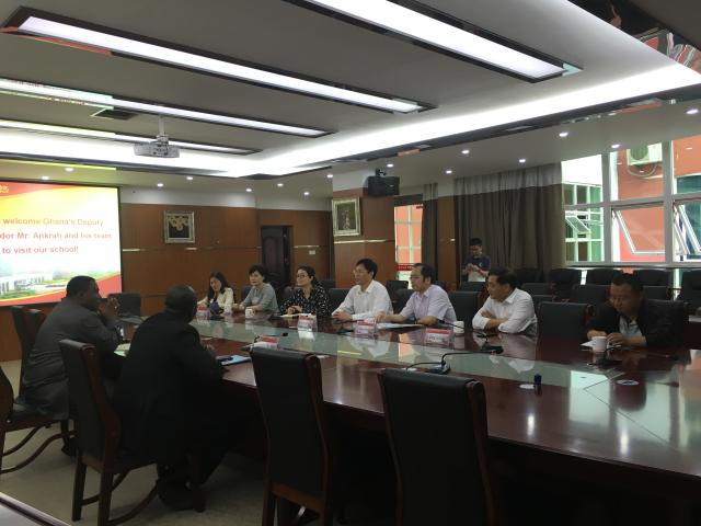 加納副大使賀拉斯·安克拉先生一行在林承超院長(zhǎng)的陪同下實(shí)地參觀了校史館、網(wǎng)絡(luò)工程系和交通工程系教學(xué)實(shí)訓(xùn)設(shè)施,饒有興致地了解了學(xué)院發(fā)展歷史、發(fā)展現(xiàn)狀,并觀看了學(xué)院宣傳片。隨后,賓主雙方在415會(huì)議室召開(kāi)了座談會(huì)。林承超院長(zhǎng)向來(lái)賓介紹了學(xué)院的基本辦學(xué)情況以及中外合作辦學(xué)發(fā)展規(guī)劃,副大使賀拉斯·安克拉先生在座談會(huì)上表示,學(xué)院的辦學(xué)成就讓他印象深刻,并希望能與學(xué)院進(jìn)一步商洽,建立友好合作關(guān)系。(院長(zhǎng)辦公室)