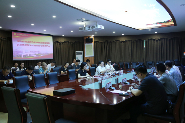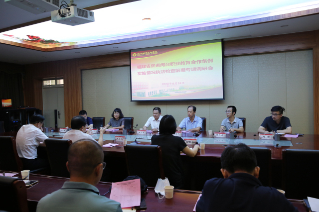 8月24日下午,市人大常委會(huì)僑臺(tái)工委主任張修強(qiáng)偕二級(jí)調(diào)研員王詢斌、副主任魏道航、秘書處處長繆存建及市臺(tái)辦交流處主持工作副處長王楠以及市教育局有關(guān)同志等一行蒞臨學(xué)校,就《福建省促進(jìn)閩臺(tái)職業(yè)教育合作條例》貫徹落實(shí)情況開展專項(xiàng)調(diào)研。校黨委書記林子波,校長李秋斌,副校長張?zhí)m英及相關(guān)處室、院系負(fù)責(zé)人參加調(diào)研座談會(huì)。