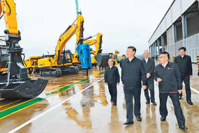 當(dāng)天下午,習(xí)近平來到柳州市考察調(diào)研。在廣西柳工集團(tuán)有限公司,習(xí)近平先后走進(jìn)公司展廳、研發(fā)實(shí)驗(yàn)中心、挖掘機(jī)裝配廠等,聽取企業(yè)發(fā)展情況介紹,察看主要產(chǎn)品展示,同企業(yè)職工和技術(shù)研發(fā)人員親切交談。習(xí)近平強(qiáng)調(diào),制造業(yè)高質(zhì)量發(fā)展是我國(guó)經(jīng)濟(jì)高質(zhì)量發(fā)展的重中之重,建設(shè)社會(huì)主義現(xiàn)代化強(qiáng)國(guó)、發(fā)展壯大實(shí)體經(jīng)濟(jì),都離不開制造業(yè),要在推動(dòng)產(chǎn)業(yè)優(yōu)化升級(jí)上繼續(xù)下功夫。只有創(chuàng)新才能自強(qiáng)、才能爭(zhēng)先,要堅(jiān)定不移走自主創(chuàng)新道路,把創(chuàng)新發(fā)展主動(dòng)權(quán)牢牢掌握在自己手中。要堅(jiān)持黨對(duì)國(guó)有企業(yè)的全面領(lǐng)導(dǎo),堅(jiān)持加強(qiáng)黨的領(lǐng)導(dǎo)和完善公司治理相統(tǒng)一,在深化企業(yè)改革中搞好黨的建設(shè),充分發(fā)揮黨組織在企業(yè)改革發(fā)展中的領(lǐng)導(dǎo)核心作用。