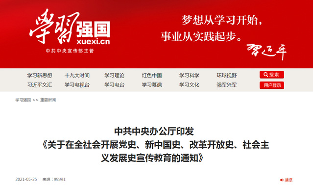新華社北京5月25日電 近日,中共中央辦公廳印發(fā)《關(guān)于在全社會(huì)開(kāi)展黨史、新中國(guó)史、改革開(kāi)放史、社會(huì)主義發(fā)展史宣傳教育的通知》,對(duì)在中國(guó)共產(chǎn)黨成立100周年之際開(kāi)展“四史”宣傳教育作出安排部署。