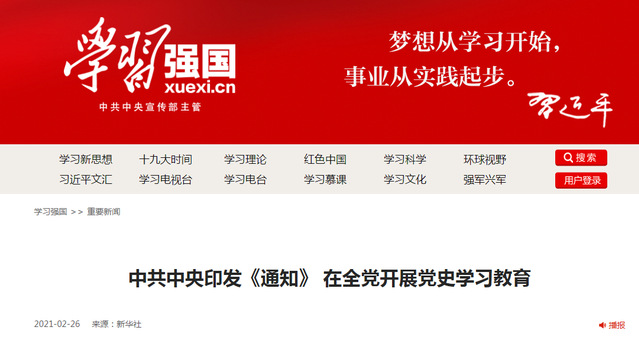 新華社北京2月26日電 近日,中共中央印發(fā)《關(guān)于在全黨開展黨史學(xué)習(xí)教育的通知》,就黨史學(xué)習(xí)教育作出部署安排。