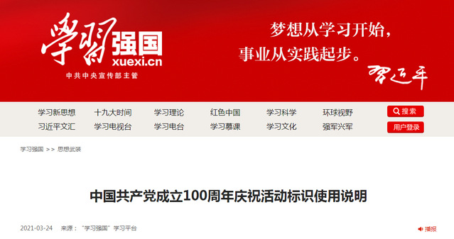 此標(biāo)識(shí)為中國(guó)共產(chǎn)黨成立100周年慶祝活動(dòng)的唯一指定標(biāo)識(shí)。