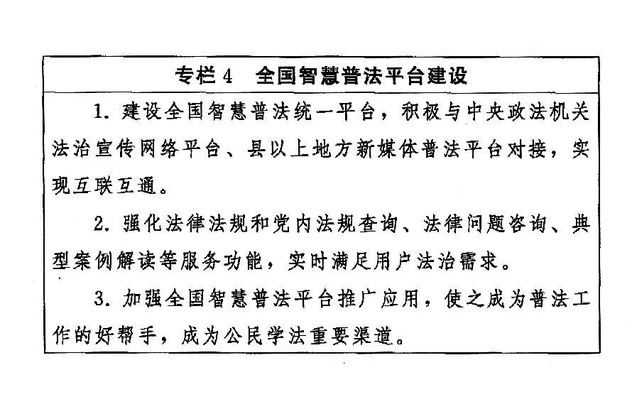 拓展普法網(wǎng)絡(luò)平臺(tái)。以互聯(lián)網(wǎng)思維和全媒體視角深耕智慧普法。強(qiáng)化全國(guó)智慧普法平臺(tái)功能,推動(dòng)與中國(guó)庭審公開(kāi)網(wǎng)、中國(guó)裁判文書(shū)網(wǎng)等網(wǎng)絡(luò)平臺(tái)的信息共享。建立全國(guó)新媒體普法集群和矩陣,發(fā)揮“學(xué)習(xí)強(qiáng)國(guó)”等平臺(tái)優(yōu)勢(shì),形成多級(jí)互動(dòng)傳播。建設(shè)全國(guó)統(tǒng)一的法律、法規(guī)、規(guī)章、行政規(guī)范性文件、司法解釋和黨內(nèi)法規(guī)信息平臺(tái),及時(shí)更新數(shù)據(jù),免費(fèi)向公眾開(kāi)放。
