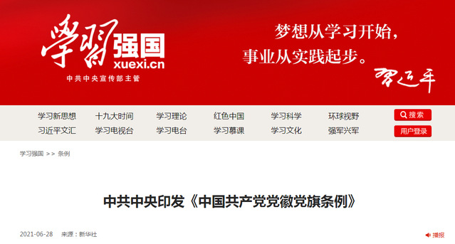 網(wǎng)絡(luò)、出版物等使用的黨徽黨旗圖案標(biāo)準(zhǔn)版本,在共產(chǎn)黨員網(wǎng)和中國共產(chǎn)黨新聞網(wǎng)發(fā)布。