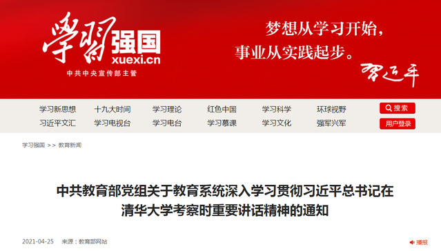 2021年4月19日,習(xí)近平總書記到清華大學(xué)考察并發(fā)表重要講話。深入學(xué)習(xí)貫徹習(xí)近平總書記重要講話精神,對于切實落實立德樹人根本任務(wù),與時俱進建設(shè)中國特色世界一流大學(xué)和高質(zhì)量教育體系,著力培養(yǎng)德智體美勞全面發(fā)展的社會主義建設(shè)者和接班人,具有十分重要的意義?,F(xiàn)就有關(guān)要求通知如下。