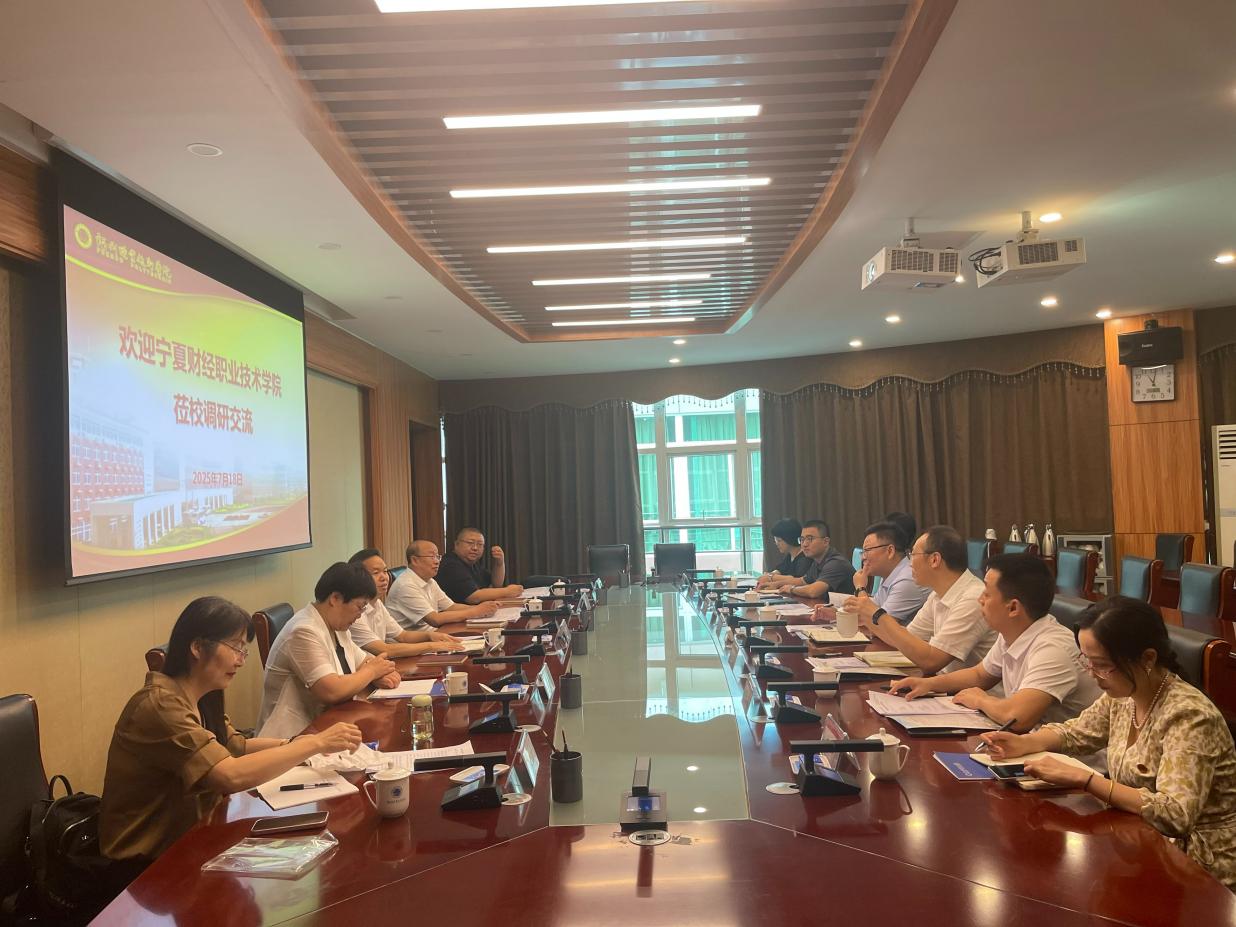 7月18日,寧夏財(cái)經(jīng)職業(yè)技術(shù)學(xué)院校長(zhǎng)陳伏豪、副校長(zhǎng)馬成旭、教務(wù)處處長(zhǎng)張瑤、經(jīng)濟(jì)貿(mào)易學(xué)院黨總支書記劉碩和院長(zhǎng)王春芳來我校調(diào)研交流。我校校長(zhǎng)陳念東、黨委副書記劉春蘭、副校長(zhǎng)饒緒黎,黨政辦公室、教務(wù)處、實(shí)驗(yàn)實(shí)訓(xùn)中心、商學(xué)院負(fù)責(zé)同志分別參加活動(dòng)。