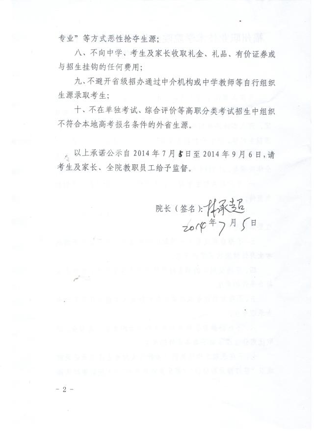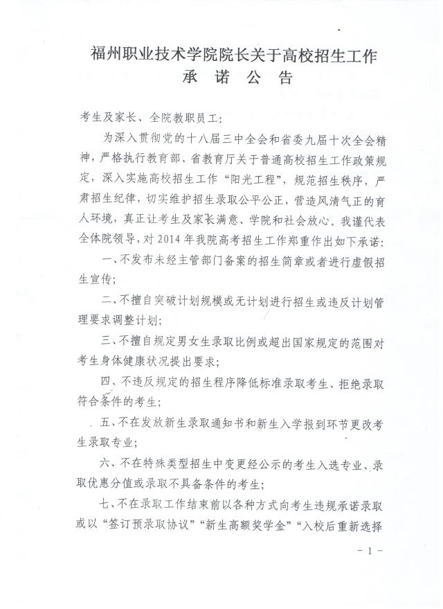 福州職業(yè)技術(shù)學(xué)院院長關(guān)于高校招生工作承諾公告